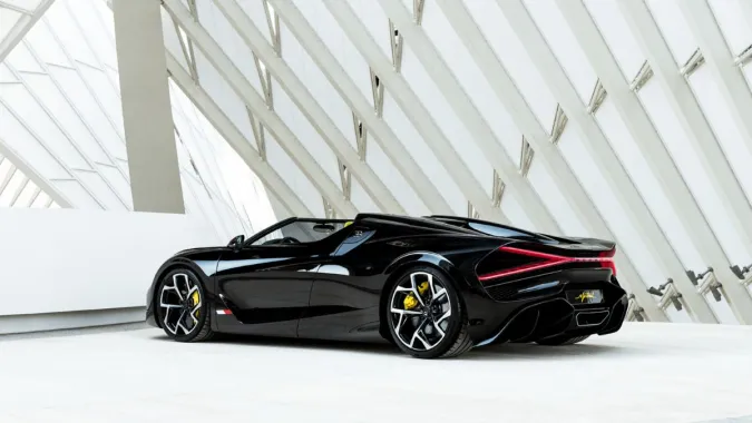 El Mistral no solo brilla por su desempeño, sino también por su diseño icónico. Vestido en negro con detalles Jet Orange, su estética rinde homenaje al Chiron Super Sport 300+ y otros vehículos récord de Bugatti. Además, incorpora detalles exclusivos como la inscripción “Mistral World Record Car” bajo su alerón trasero, consolidando su estatus como una pieza única en la historia automotriz.